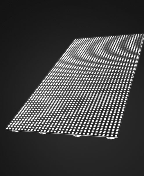 Indoor transparent, mesh-based LED displays that create high-impact visuals without blocking natural views.