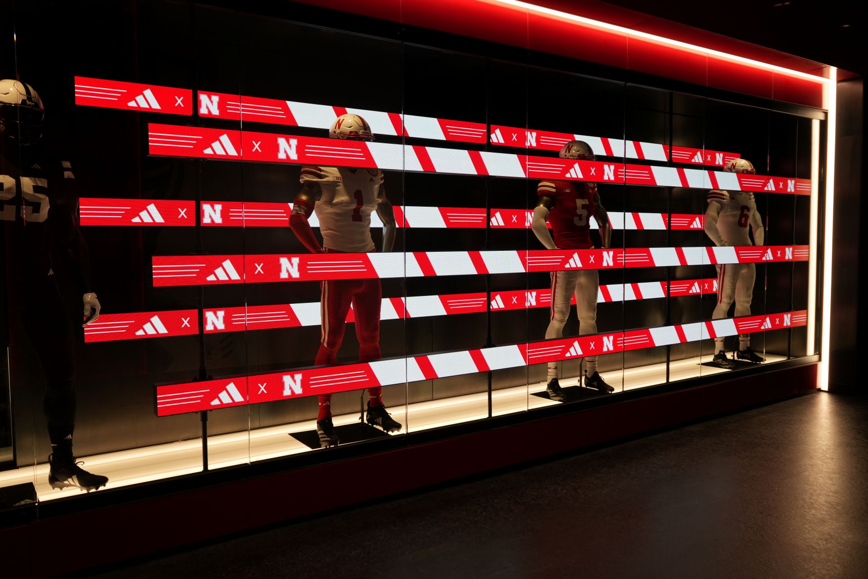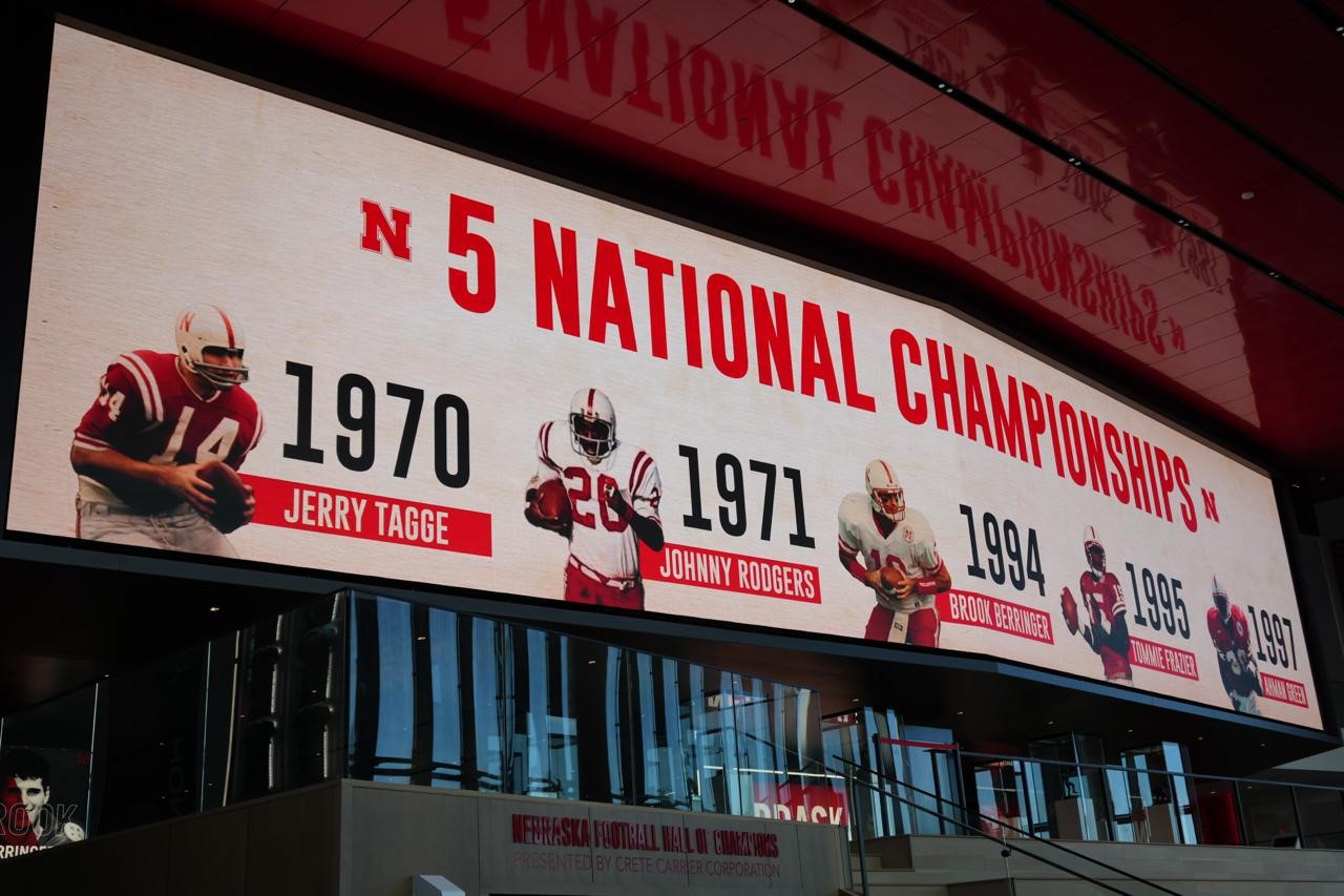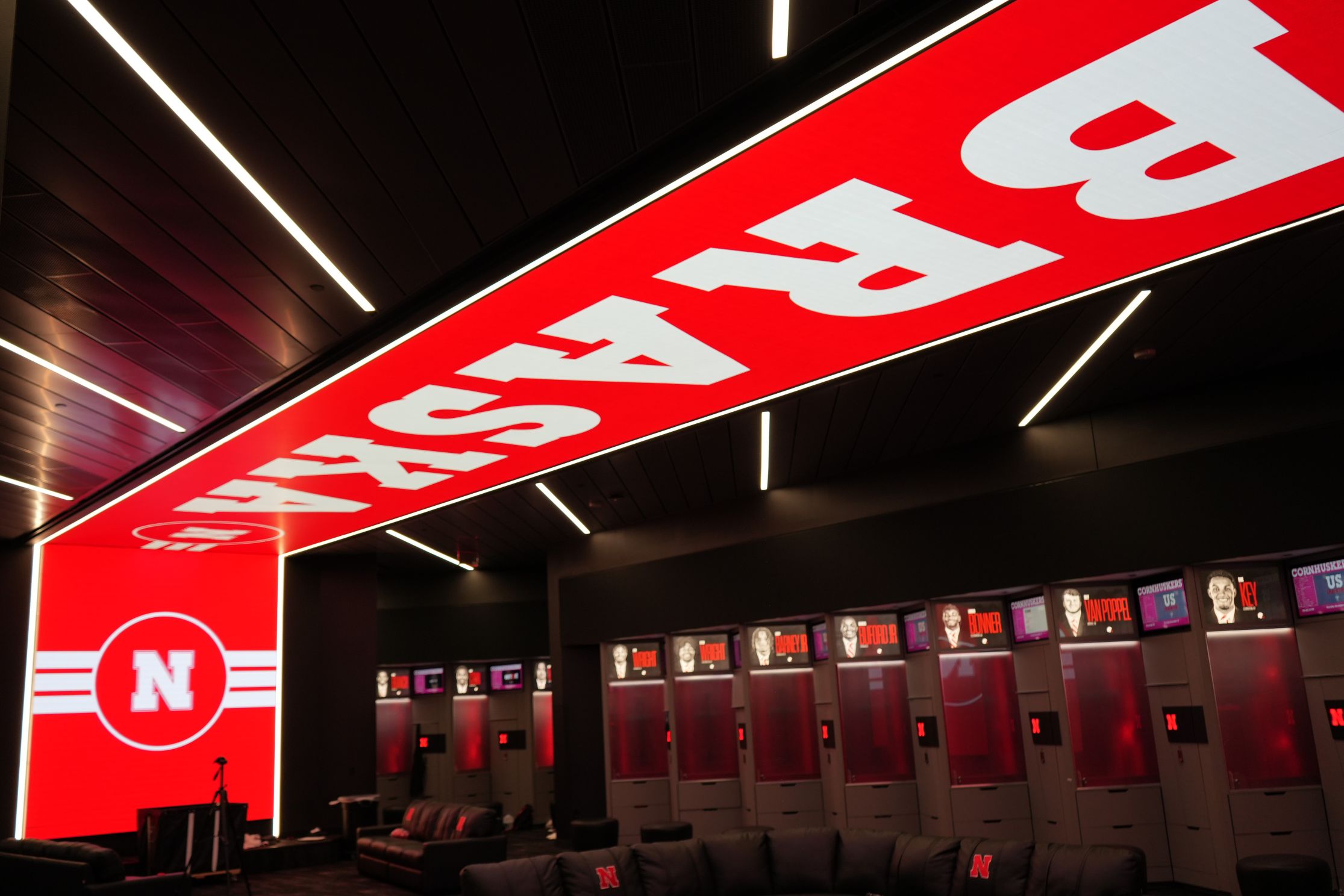 “We have a huge LED display across the locker room that shows the big Nebraska logo from one side to the other,” explained Oteng. “It’s bright, it’s bold and it represents who we are. The players love it.”